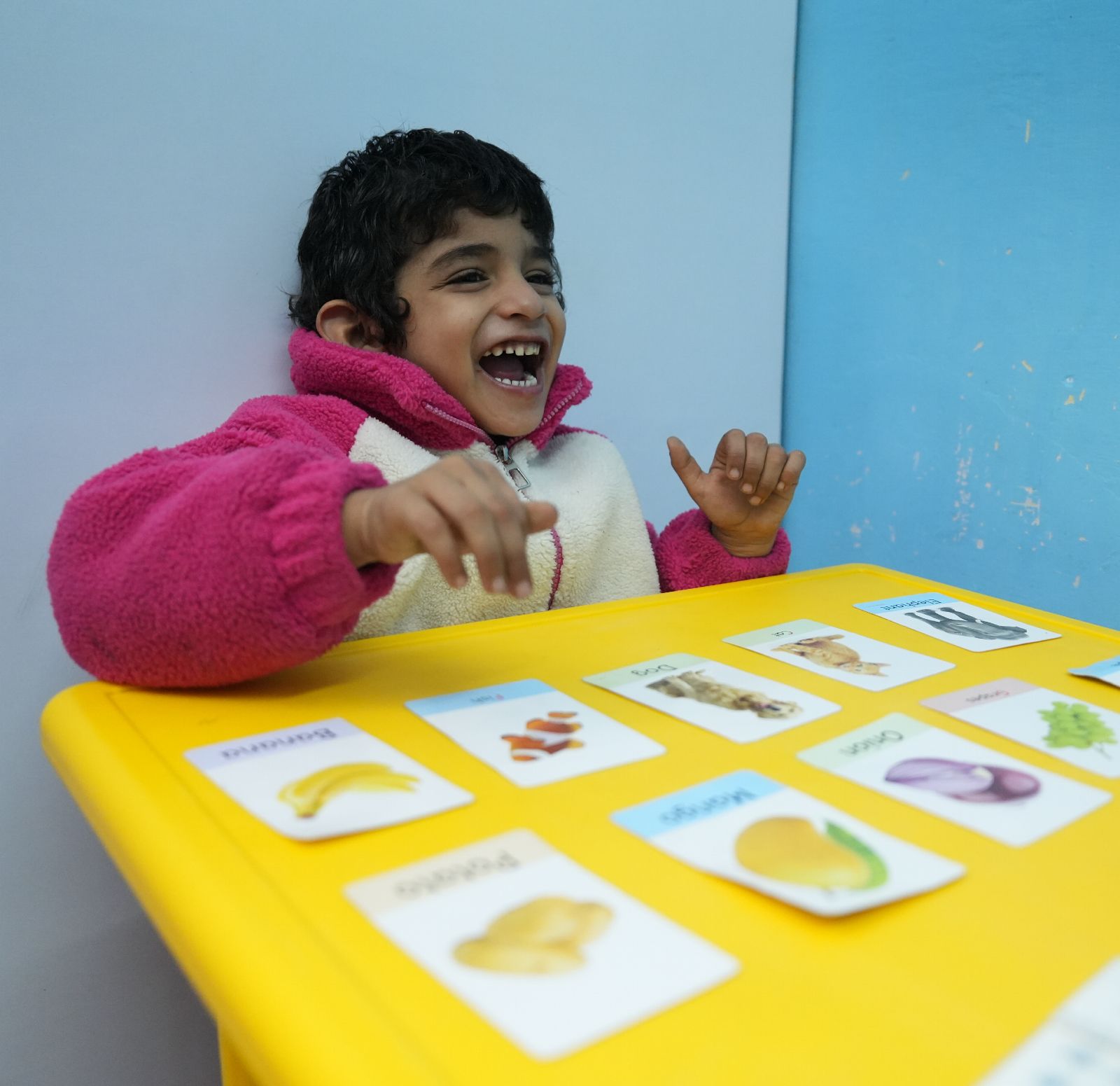 For Gideon, changes began to appear within a few months. He started speaking simple words, including “mummy” and “papa”, and addressing his special educator and speech therapist as “ma’am”. He began following instructions, identifying objects, animals, and body parts, and engaging more with people around him. He can now hold a pencil and scribble independently. These seemingly small steps reflect growing cognitive and language development and readiness for more structured learning.