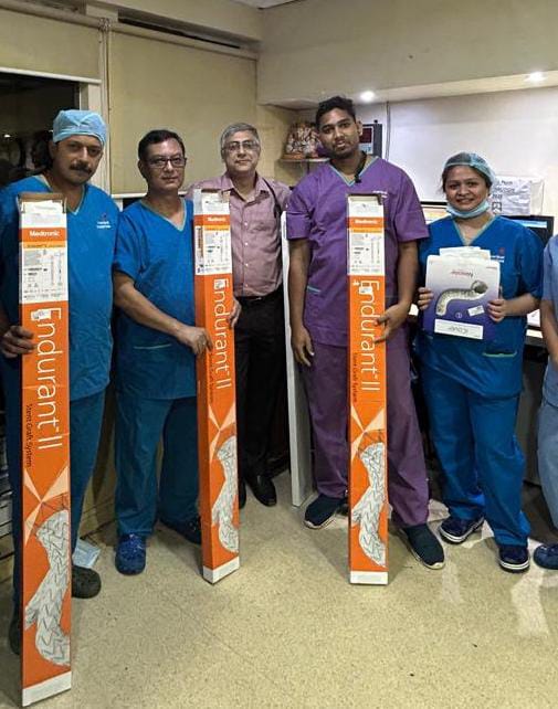 Kolkata, Nov 24th: Continuing its commitment to medical excellence, Manipal Hospital Broadway, a leading unit of the Manipal Hospitals Group, successfully performed a highly specialized Endovascular Aneurysm Repair (EVAR) on a 67-year-old male patient from Mizoram who had been diagnosed with a large abdominal aortic aneurysm, a critical swelling of the body’s main blood vessel in the abdomen. The complex, minimally invasive procedure was carried out under the expert care of Dr. Subhasis Roy Chowdhury, HOD-Cath Lab, Manipal Hospital, Broadway and Dr. Jayanta Das from the Department of Vascular Surgery, Manipal Hospital, Broadway.